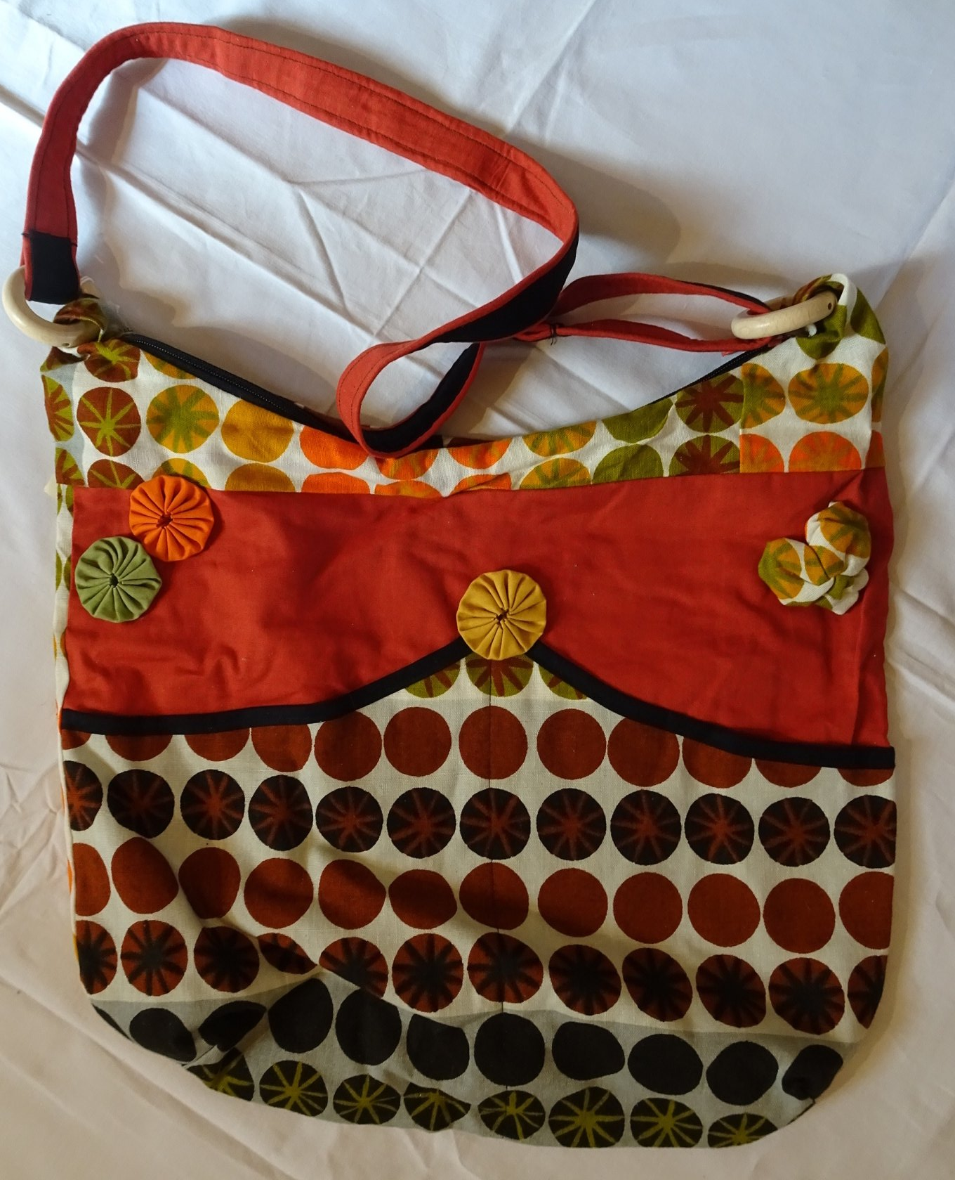 Bei diesen Taschen ist das Motiv als extra Tasche gearbeitet, so dass Geldbeutel, Schlüssel u.a. von den Einkäufen getrennt ist. Auch hier gilt: diese Farbkombination mit diesem Muster ist einmalig!